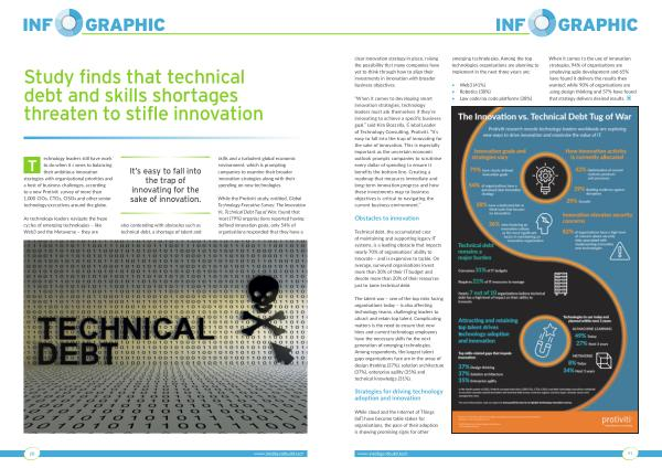 Technical debt , the accumulated cost of maintaining and supporting legacy IT systems , is a leading obstacle that impacts nearly 70 % of organisations ’ ability to innovate – and is expensive to tackle . On average , surveyed organisations invest more than 30 % of their IT budget and devote more than 20 % of their resources just to tame technical debt .
