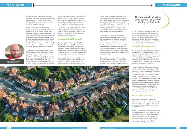 The Welsh Government is becoming a pioneer in this area , as it continues to invest in the digital infrastructure required to support IoT technology . The end of last year it announced further funding for Conwy County Council to extend the LoRaWAN network already in place throughout the region . The Council and local businesses in the area can utilise the network to roll out their own solutions , whether it ’ s a local hospitality business monitoring the temperature of refrigeration units remotely or the Council ’ s Housing Solutions Team monitoring properties to identify problems on boilers , smoke alarms , or analysing carbon monoxide and water leak detectors .