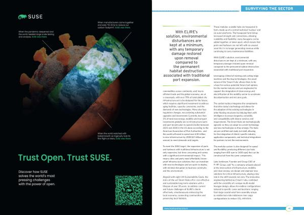Luke Jenkinson , Founder and Group CEO of ELIRE Group , said “ As a company uniquely placed at the intersection of infrastructure , mobility and clean energy , we design and engineer new solutions for critical infrastructure , playing a key role in the shift towards net zero . The innovative engineering behind our Smart Hubs , combined with the versatility of a unique multi-modal hexagon design , allows for endless configurations tailored to specific cases and locations ; ranging from large coastal wind farm assembly setups to smaller last-mile midstream river cargo configurations to reduce CO 2 emissions .