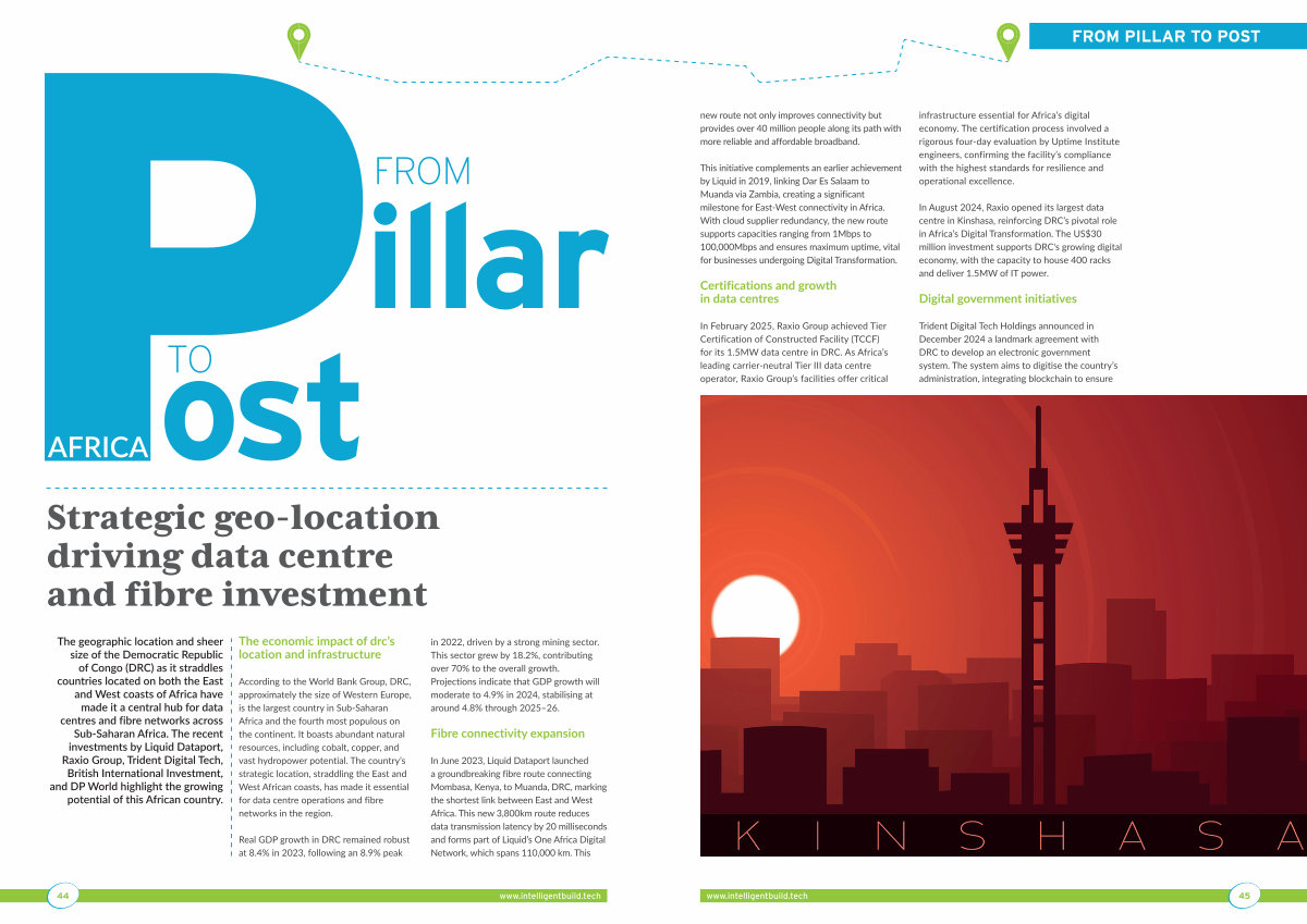 In August 2024, Raxio opened its largest data centre in Kinshasa, reinforcing DRC’ s pivotal role in Africa’ s Digital Transformation. The US $ 30 million investment supports DRC ' s growing digital economy, with the capacity to house 400 racks and deliver 1.5MW of IT power.