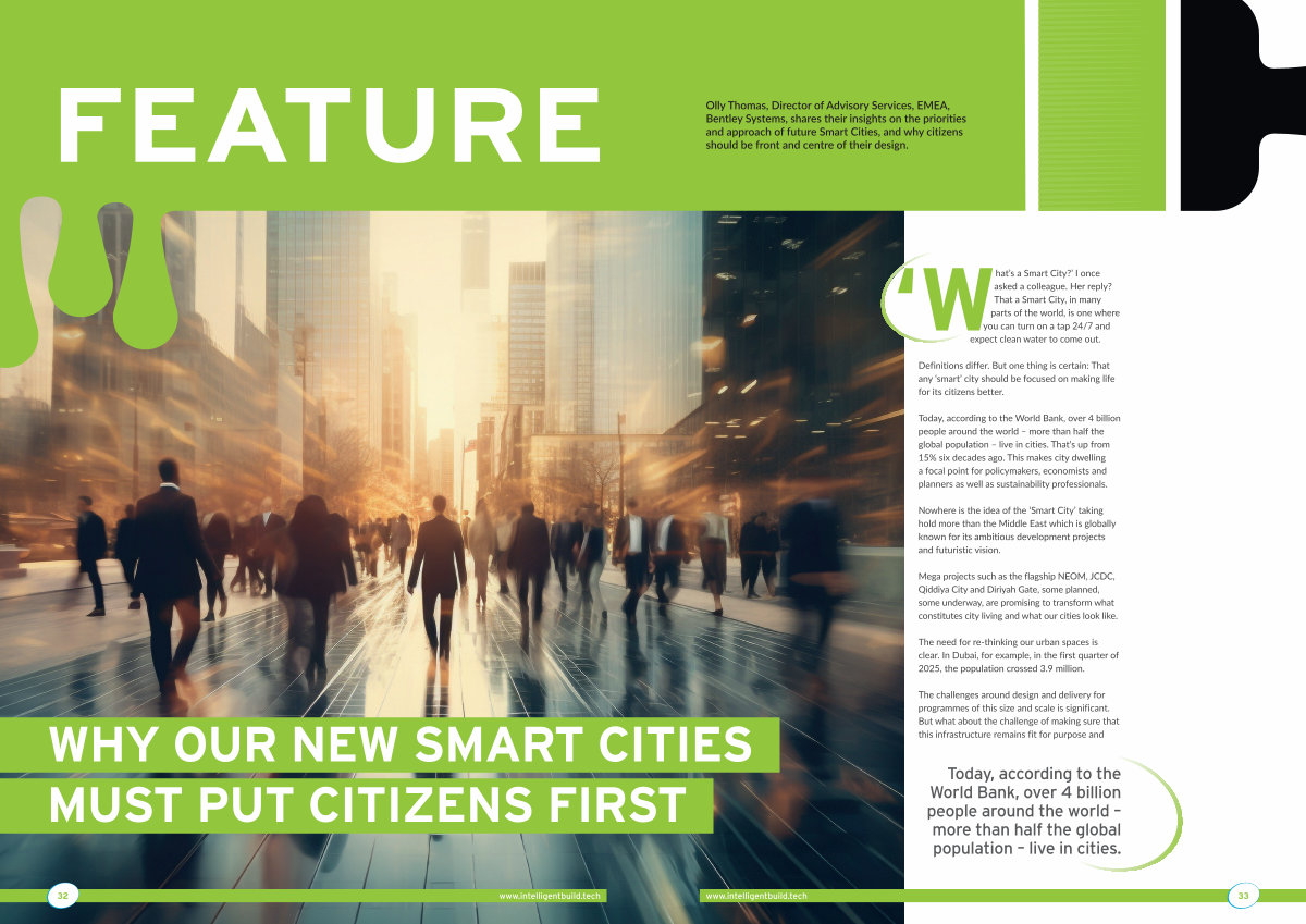 Olly Thomas, Director of Advisory Services, EMEA, Bentley Systems, shares their insights on the priorities and approach of future Smart Cities, and why citizens should be front and centre of their design.