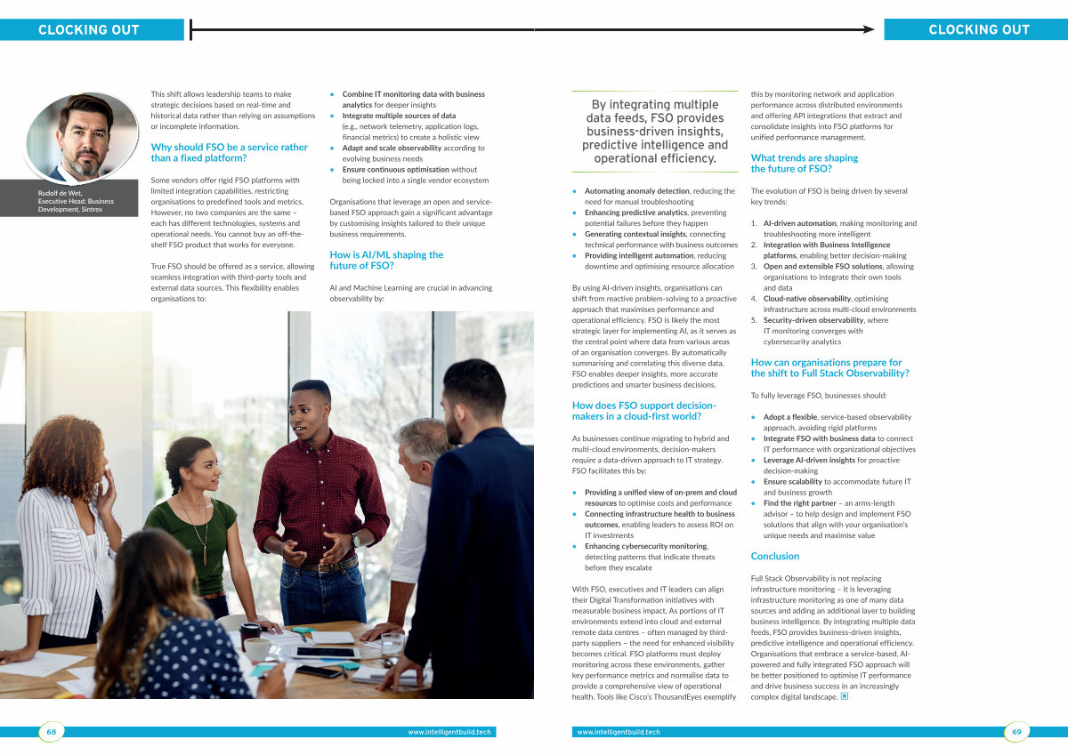 Some vendors offer rigid FSO platforms with limited integration capabilities, restricting organisations to predefined tools and metrics. However, no two companies are the same – each has different technologies, systems and operational needs. You cannot buy an off-theshelf FSO product that works for everyone.